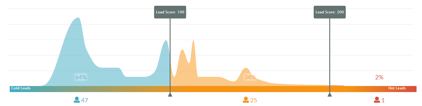 Na plataforma Sharpspring, que nós usamos neste exemplo, existem dois níveis de realce que separam os leads em três estágios: